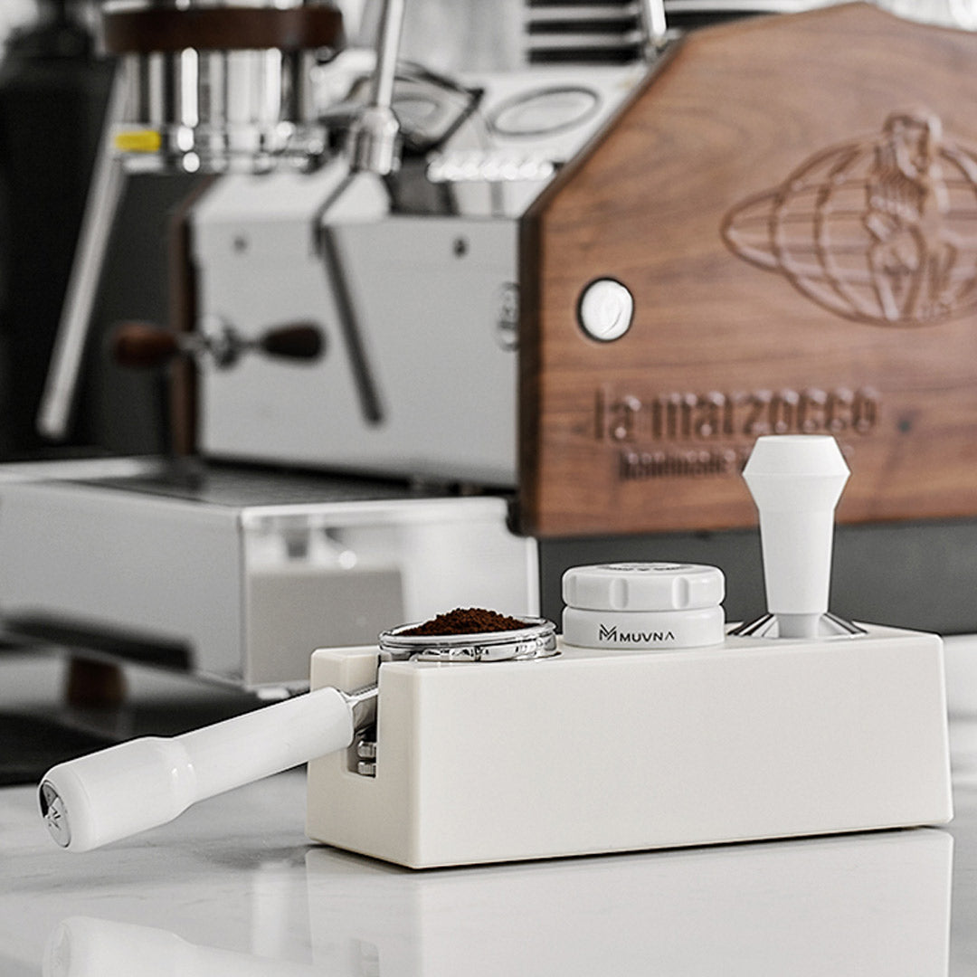 The Munva Tamping Station accommodates not only your tamper and portafilter but also your coffee distributor, allowing you to have all the tools you need for a perfect espresso preparation in one convenient location.